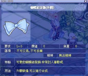 任務獎勵:[蝴蝶結髮飾(外觀)×1][56158 exp,46630 Tmexp]